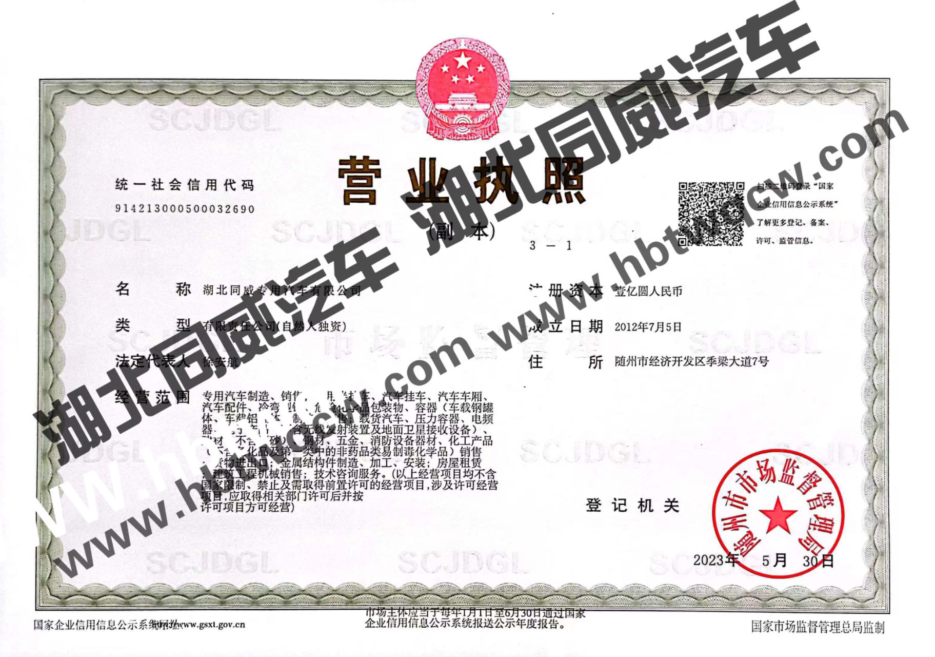 湖北同威專用汽車有限公司位于炎帝神農(nóng)故里、編鐘古樂之鄉(xiāng)、專用汽車之都--湖北省隨州市。公司地處隨州市高新技術(shù)開發(fā)區(qū)季梁大道七號(hào)。公司占地面積約142余畝,建筑面積3.6萬平方米,總投資約1億元。公司是一家具有自主研發(fā)能力的專用汽車制造和汽車型材生產(chǎn)企業(yè),公司集產(chǎn)品設(shè)計(jì)開發(fā)、生產(chǎn)制造、銷售服務(wù)于一體。公司產(chǎn)品注冊(cè)商標(biāo)為“專威牌”,是資深老一輩的專汽人攜手共同創(chuàng)立的新品牌,為拓展新的專用汽車領(lǐng)域做貢獻(xiàn)。
