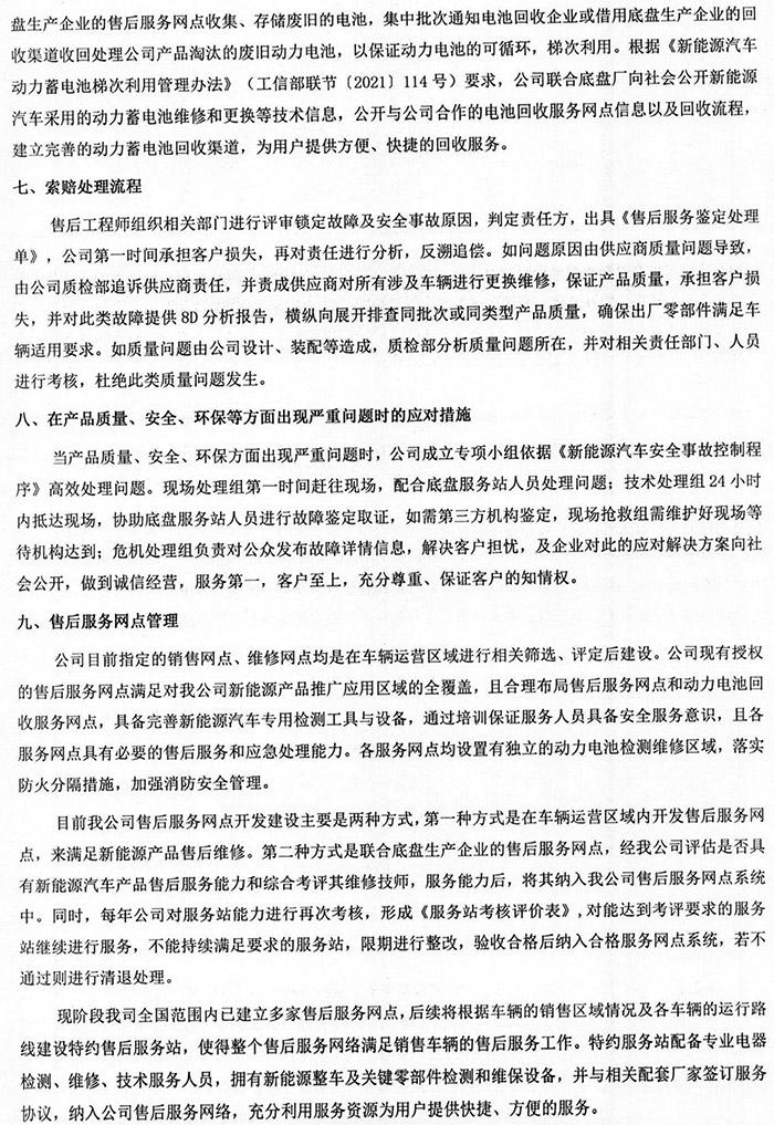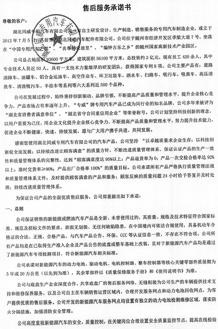 在用戶嚴(yán)格遵循使用說明書,正常操作的情況下,自購車之日起(以車輛出廠登記卡為準(zhǔn))一年內(nèi),行駛里程不超過 25000公里之內(nèi),因設(shè)計(jì)、制造、裝配原因引起的產(chǎn)品機(jī)件損壞,經(jīng)有關(guān)汽車服務(wù)站和監(jiān)督部門鑒定后,在三個工作日內(nèi)向我公司售后服務(wù)部門提交書面資料,售后服務(wù)部門確認(rèn)后實(shí)行三包服務(wù)。